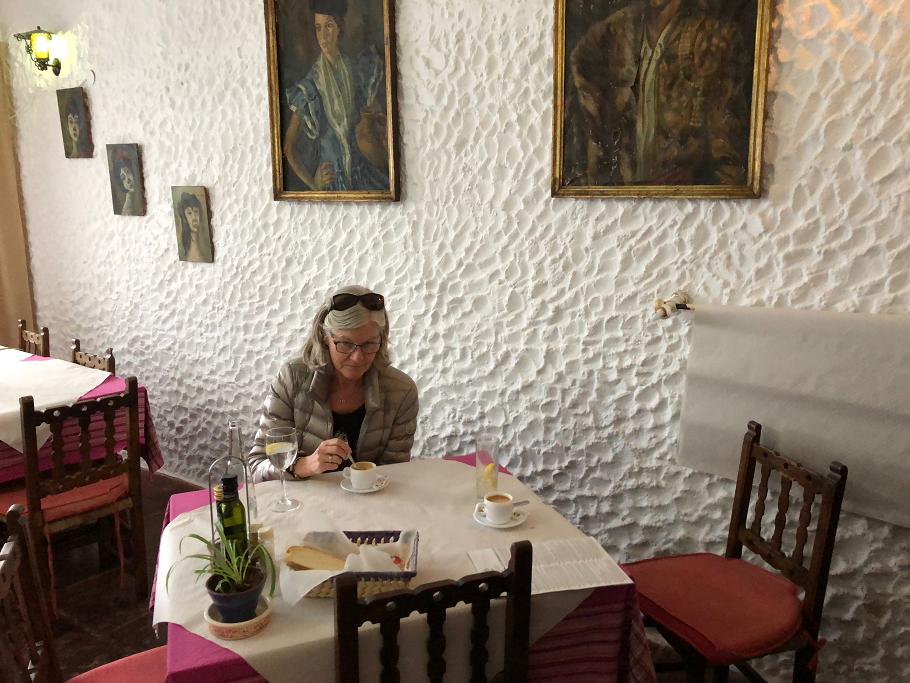 Julefrokost udenfor i solen på El Olivar, der lå i den nordøstlige ende af den store plads i Mijas, Plaza Virgen de la Peña, lige ved siden af Alboka.