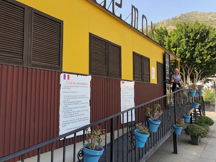 Miniaturemuseet har til huse i en gammel gul cirkusvogn oven for den store plads i Mijas.