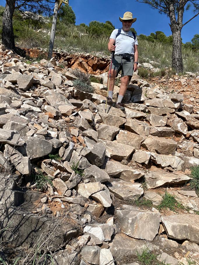 På vej ned af stentrapperne fra grusvejen Carril Nuevo.
