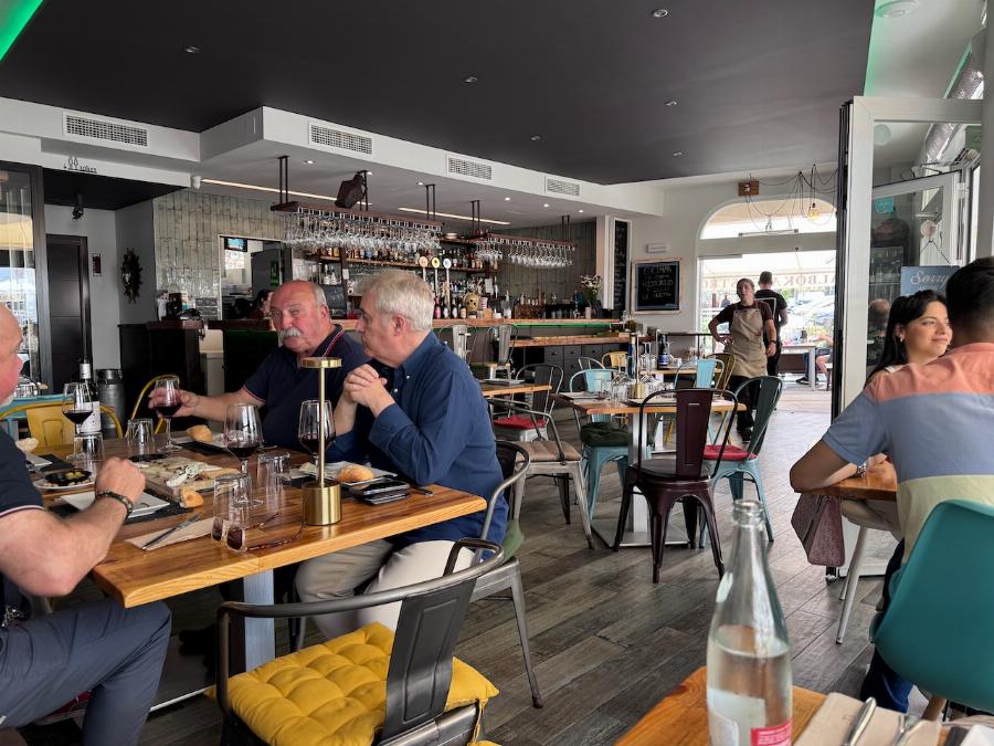 Restauranterne på den store plads i Mijas Pueblo, Plaza Virgen de la Peña, har stort set udelukkende turister som deres målgruppe. De lokale spiser sjældent her. Det meste af året lukker restauranterne før aften. Når vi af og til spiser eller får en kop kaffe på den store plads, er det kun La Plaza, vi har benyttet. Fordi vi kender til La Plazas baggrund med samme ejer som den lokale vin, Viña Tamisa, som man kan købe her.