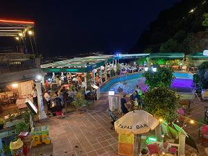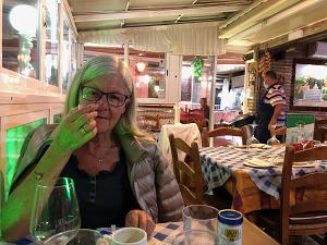 Aftensmad på Restaurante la Bella Copia. Ikke mange andre gæster denne aften under coronakrisen.